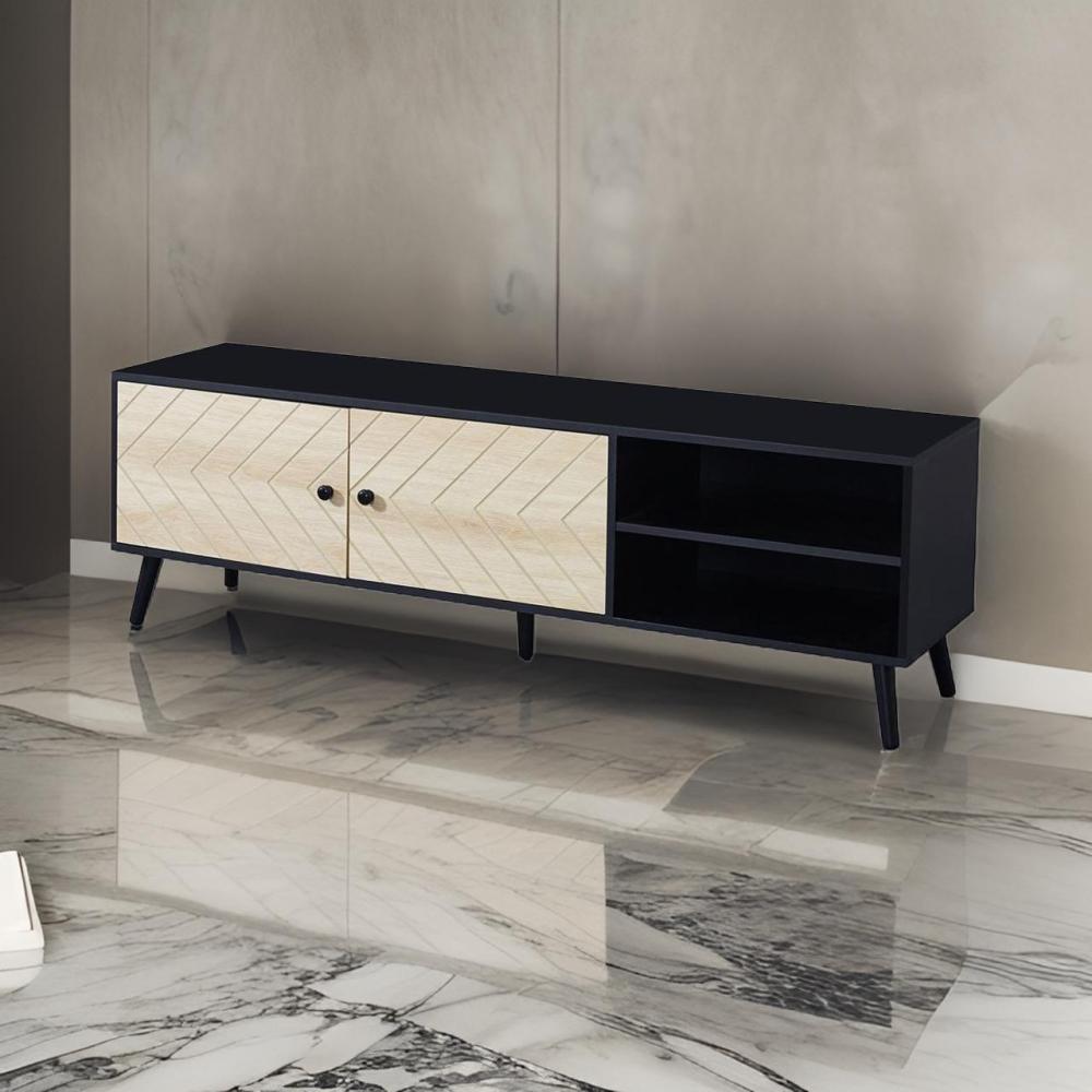 طاولة تلفاز عصرية بتصميم أنيق يناسب تمامًا الديكور العصري الحديث لمنزلك. مصنوعة من الخشب الفاخر مع سطح أملس وناعم، تقدم لك مساحة مثالية لعرض جهاز التلفاز مع لمسة من الأناقة. تحتوي الطاولة على وحدة تخزين عملية لتنظيم أغراضك الشخصية مثل أجهزة التحكم أو الوسائط، بينما تضفي القواعد المعدنية لمسة عصرية وقوة تصميم مميزة. اختر هذه الطاولة لتضيف لمسة فاخرة وعملية في كل زاوية من منزلك.