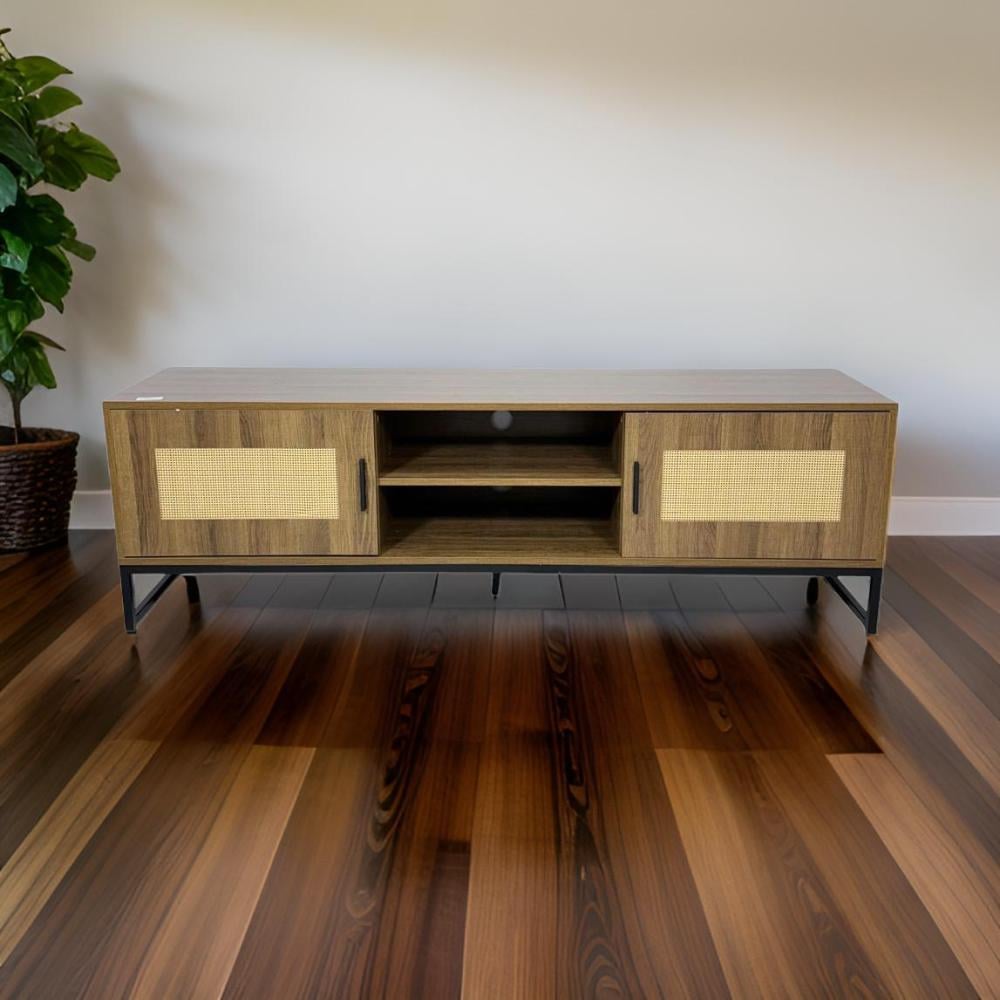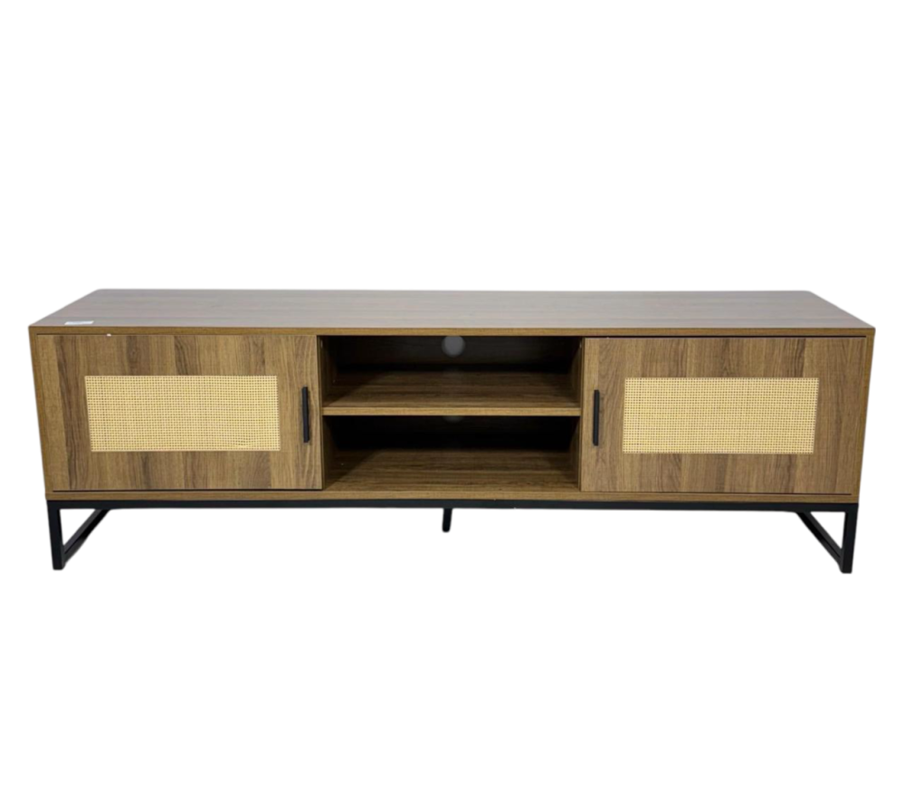 تقدم لك طاولة التلفاز الخشبية الرائعة، التي تجمع بين الأناقة والمتانة. تأتي هذه الطاولة بتصميم عصري مبهر، مع واجهة من الراتان تضيف لمسة من الفخامة والدفء إلى أي غرفة. بينما توفر القاعدة المعدنية القوية ثباتًا لا مثيل له، مما يجعل هذه الطاولة مثالية لدعم جميع أجهزة الترفيه الخاصة بك بأمان.