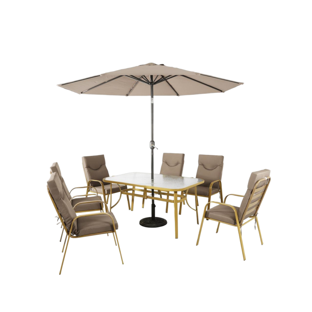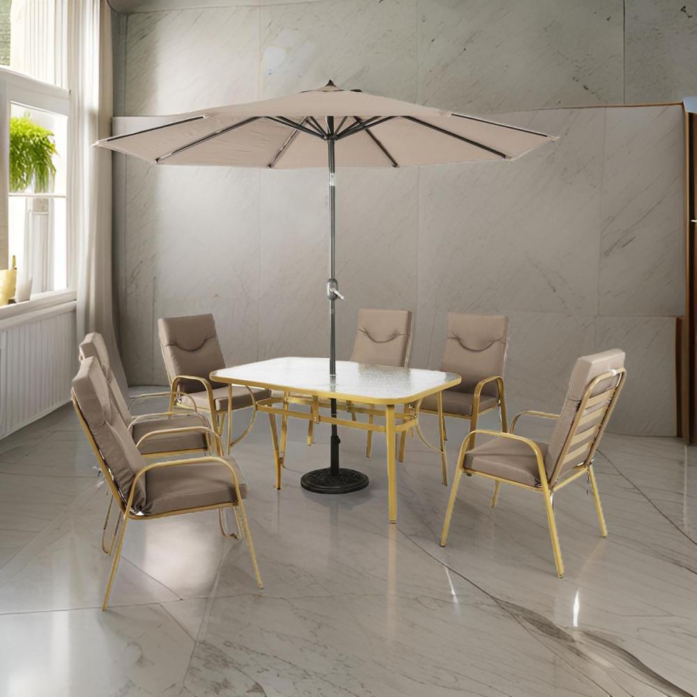 🌟 جلسة خارجية 6 أشخاص مع مظلة رائعة - لمسة من الفخامة والراحة في الهواء الطلق! 🌟