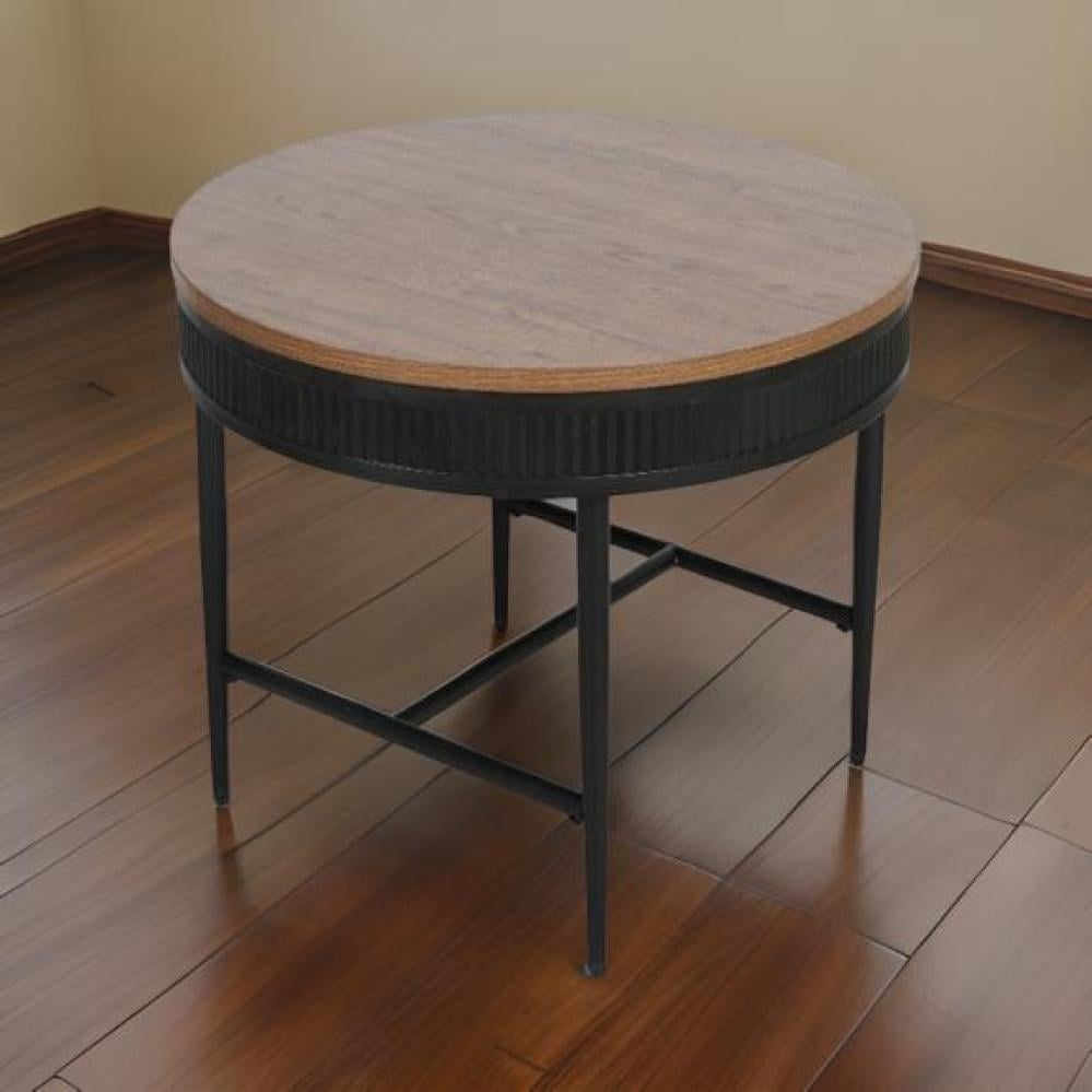طاولة خدمة مودرن بتصميم دائري رائع مع قاعدة من المعدن بتصميم هندسي يضيف لمسة من الأناقة والرقي لمنزلك قطعة فنية رائعة تضيف لمسة من الجمال لمنزلك المقاسات :قطر سطح الطاولة 80 سم - الإرتقاع 43 سماللون : بني خشبي