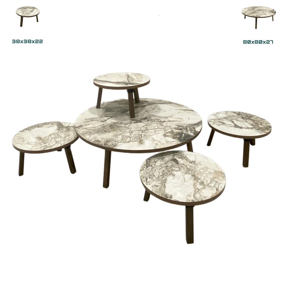 الطاولات الجانبية : قطر سطح الطاولة 38 سم والإرتفاع 22 سم