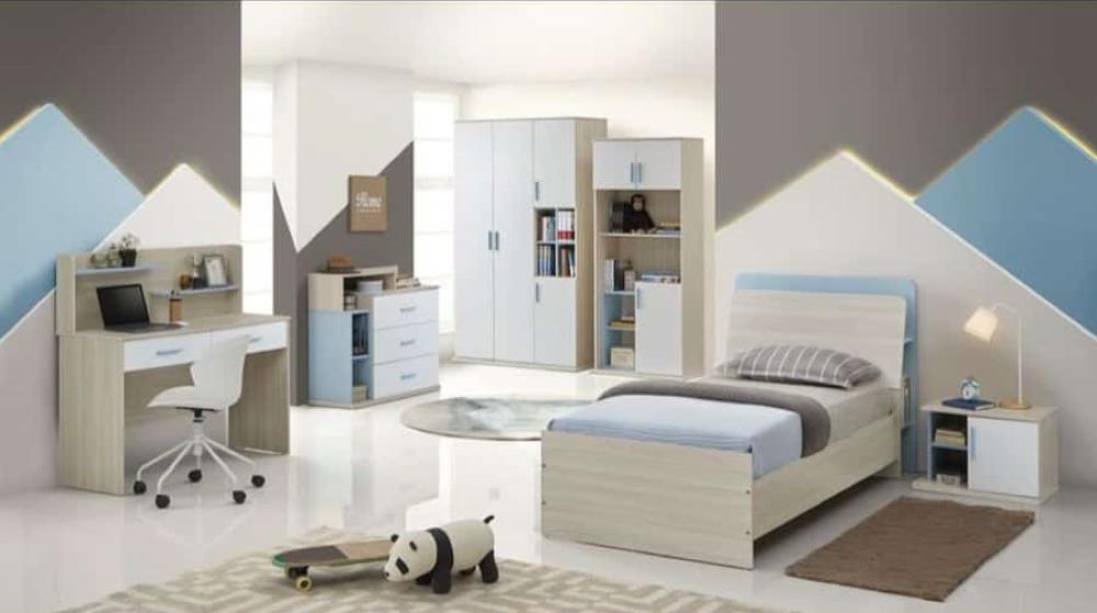( سرير مقاس 90*190 + دولاب ملابس 3باب + دولاب مكتبة + وحدة أدراج + مكتب + كومودينه )